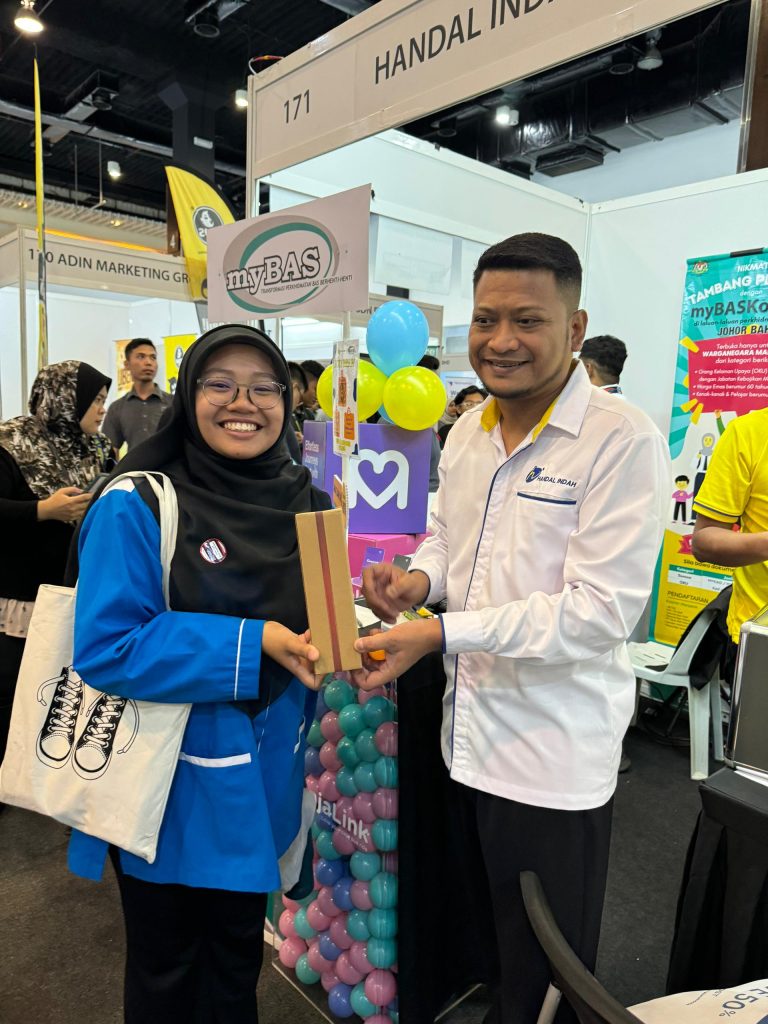Anuar Siraj, the event coordinator for Handal Indah’s booth arrangements, received praise from PERKESO representatives for creating a vibrant and engaging booth. The setup also featured an interactive area for the registration of the myBASKonsesi card, enhancing community access to discounted transport services in Johor Bahru. Interactive sessions throughout the fair fostered a welcoming environment, allowing visitors to experience the warm and inclusive work culture that Handal Indah offers.